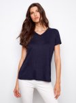 > Linen V-Neck T-Shirt
